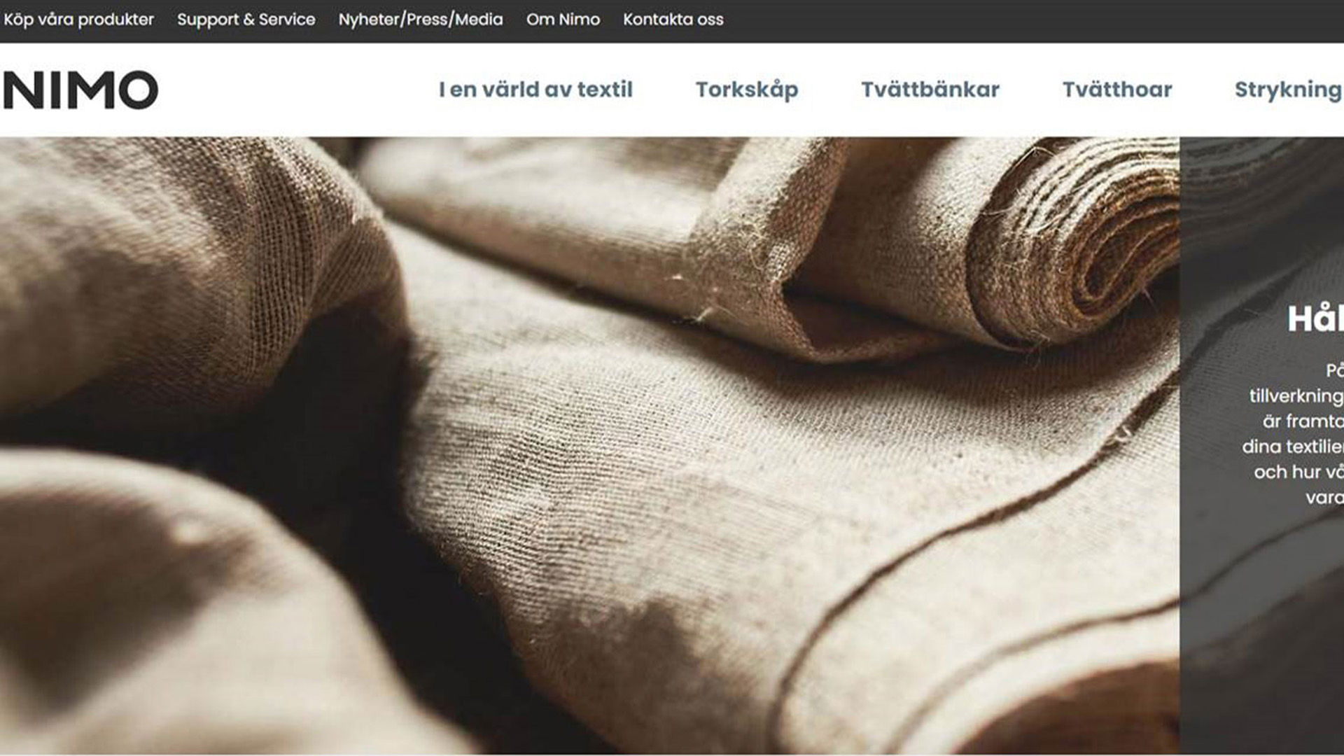 Sveriges främsta torkskåpstillverkare NIMO investerar i en ny varumärkesplattform och grafisk profil samtidigt som de lanserar en ny webbplats som ger stöd till fortsatt digitalisering av kunddialogen. - Siktet är ställt på att växa internationellt och då behöver vi kommunicera utifrån vad vi tror på och vara mer digitalt tillgängliga för våra kunder. Torkskåpet i sig är ett resultat av ett hållbart sätt att tänka på textilvård, med den nya varumärkesplattformen gör vi det nordiska arvet tydligare, säger Karin Kruse, VD på NIMO.